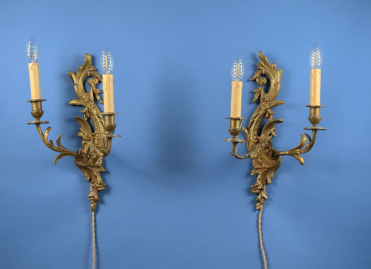 2 Wandleuchten im Barock Stil um 1900